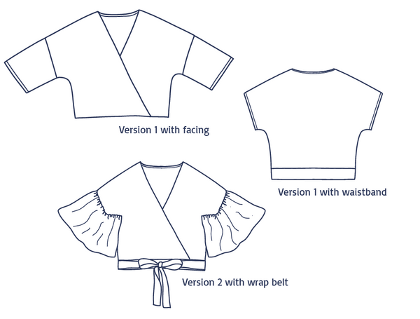 Just as versatile as it is cheerful, Trixie is a true must-have for your wardrobe! The crossover design adds a lovely detail to this blouse while creating an elegant V-neckline. Trixie offers three different sleeve options: a long sleeve, a short cut-on sleeve, and a fashionable gathered sleeve. This way, you can perfectly adapt the blouse to the season and make it exactly to your style! The waistband included can be used as a facing or a visible waistband, or you can make Trixie into a true wrap blouse with the fun ties!
