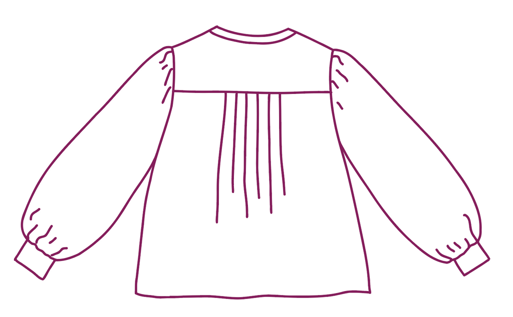 Alexa is an oversized blouse that is surprisingly flattering, featuring wide, gathered sleeves. The front stands out with its elegant button placket, subtle shoulder gathers, and delicate collar. The playful pleats at the back add that little something extra to the blouse.The sleeves are finished with a continuous bound placket and cuff with two buttons. Prefer something simpler? Go for the larger sleeve cuffs without buttons!