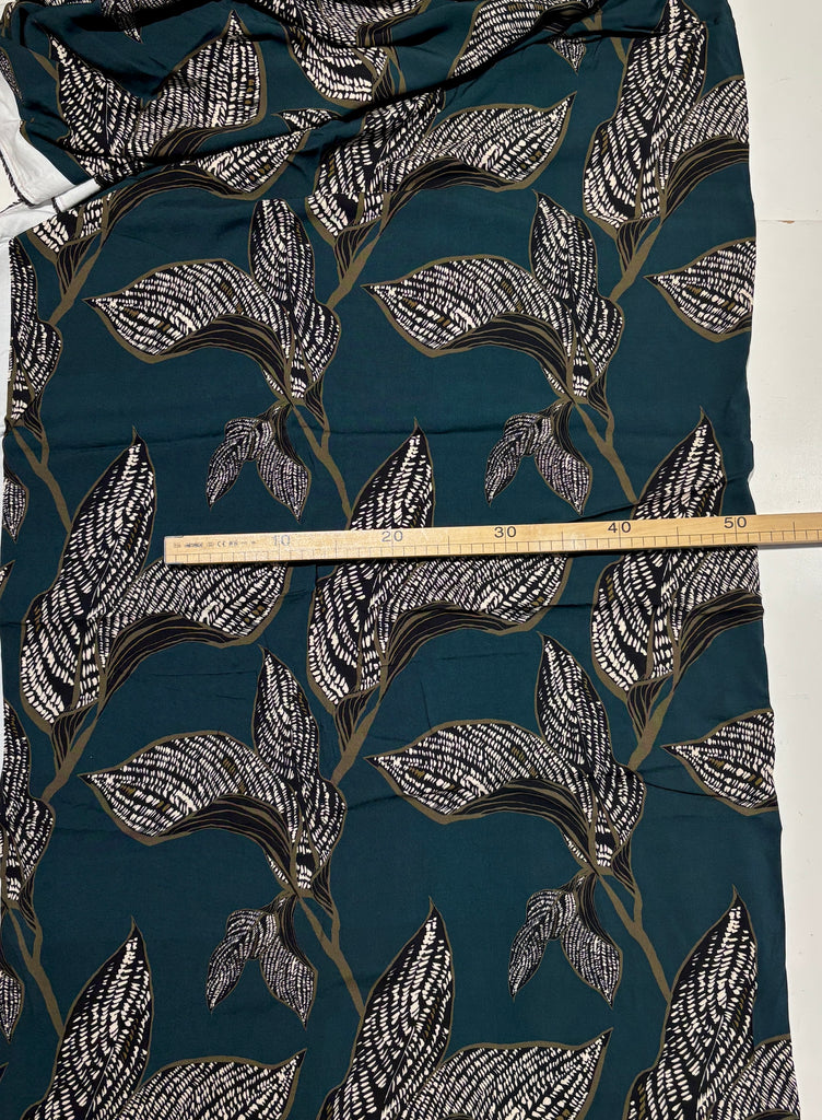 Coupon échantillon - Viscose vert pétrole avec des grandes feuilles