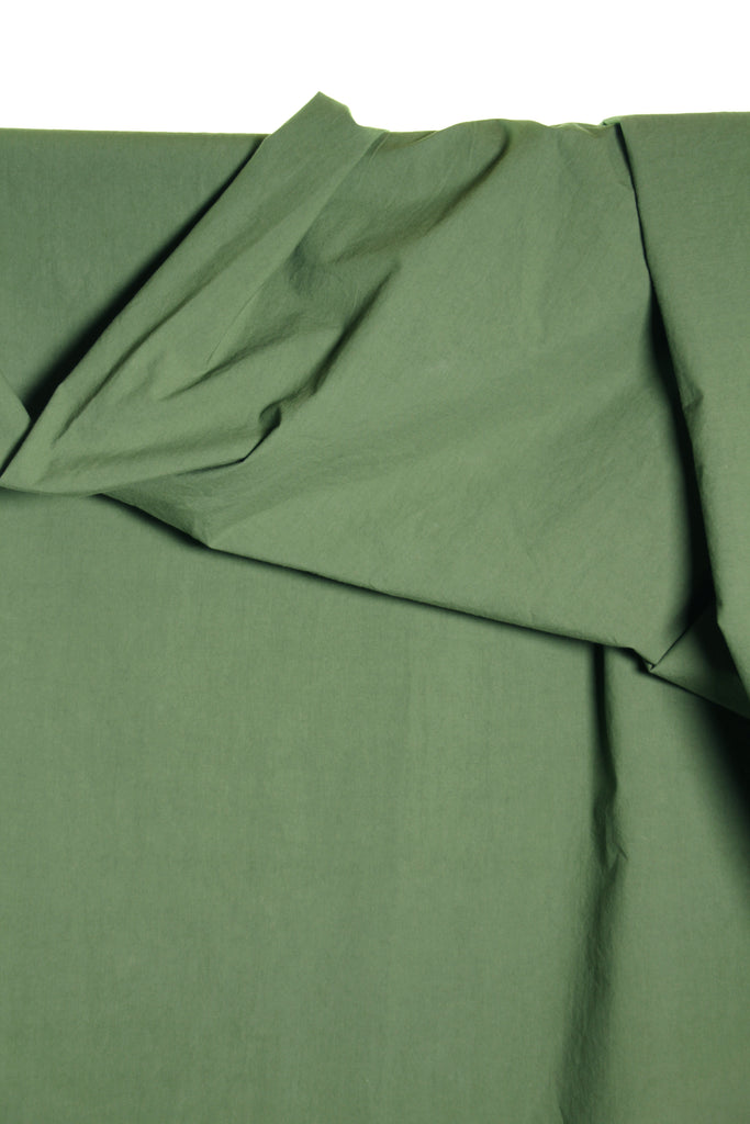 Un coton léger en couleur cactus vert, au toucher singulier 'papertouch' et au froissé naturel. C'est un tissu à tissage serré qui donne un tombé structuré.
